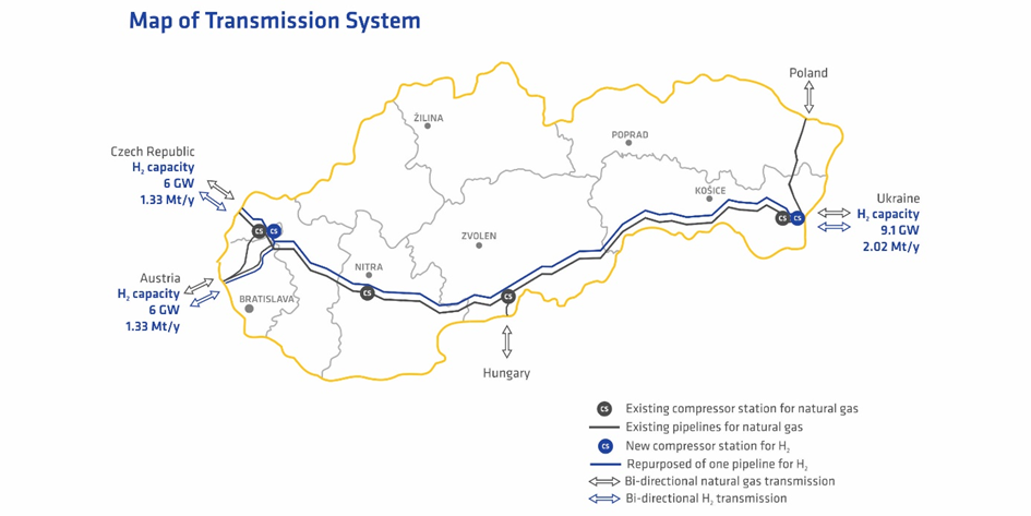 - Improving Hydrogen Availability at a Favourable Price and Creating Conditions for Further Development of the Hydrogen Network in the Central European Region and in Slovakia: The aim is to make the Slovak hydrogen transmission network a crossroads for hydrogen transport in the Central European region, making Slovakia a key pillar for hydrogen transport, enabling flows from North Africa, the Balkans, and Ukraine (important for the recovery of Ukraine) to the EU.