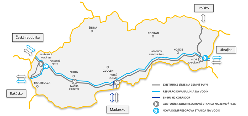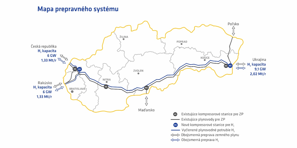 - Zlepšenie dostupnosti vodíka za priaznivú cenu a vytvorenie podmienok pre ďalší rozvoj vodíkovej siete v regióne Strednej Európy a na Slovensku s cieľom, aby sa slovenská vodíková prepravná sieť stala križovatkou pre prepravu vodíka v stredoeurópskom regióne. Tým sa Slovensko stane kľúčovým pilierom pre prepravu vodíka, čo umožní toky z oblasti Severnej Afriky, Balkánu ako aj Ukrajiny (dôležité pri obnove Ukrajiny) do krajín Európskej Únie.